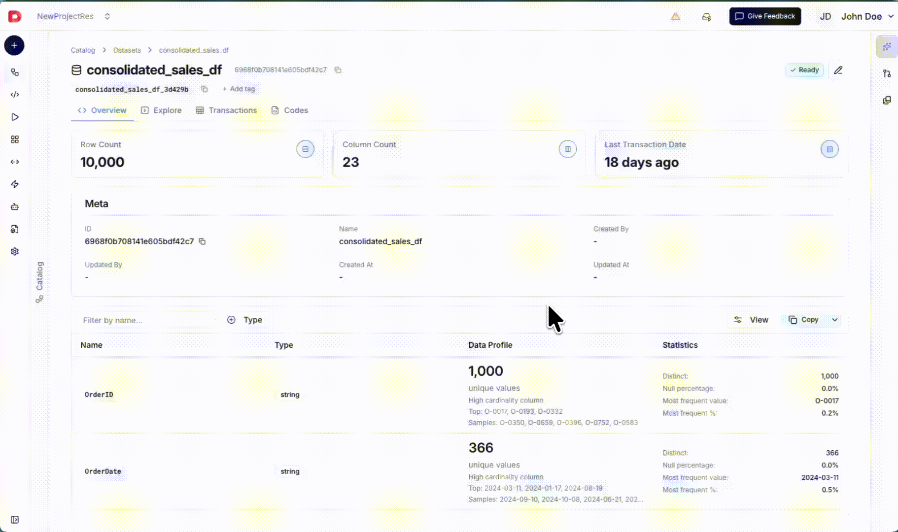 - Data Profiling: Understand your data at a glance without manual exploration. Data profiling automatically analyzes your datasets and views, revealing key insights through visual charts. For categorical columns, see value distribution with histograms and pie charts. For numeric columns, view statistical metrics like average and standard deviation. Get instant visibility into your data’s characteristics.